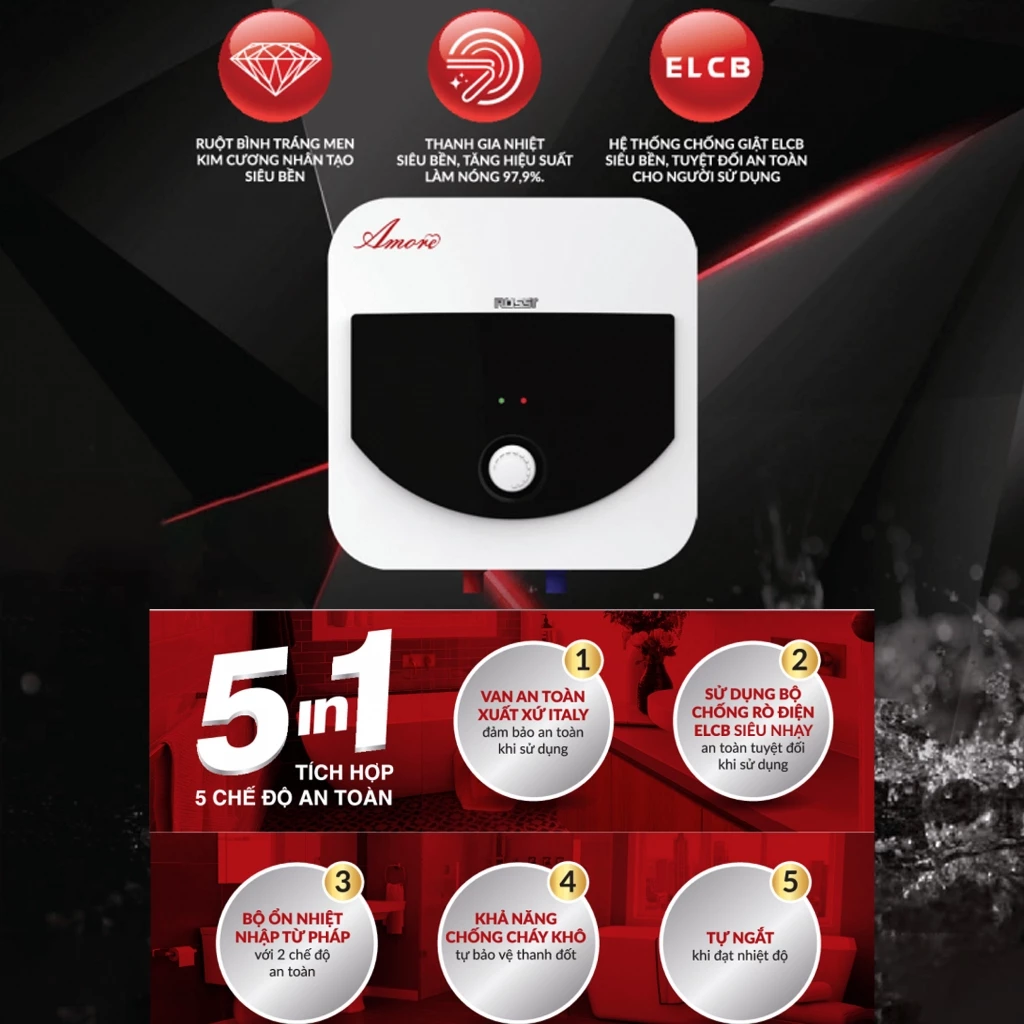 Bình nước nóng Rossi Amore tích hợp 5 chế độ an toàn: