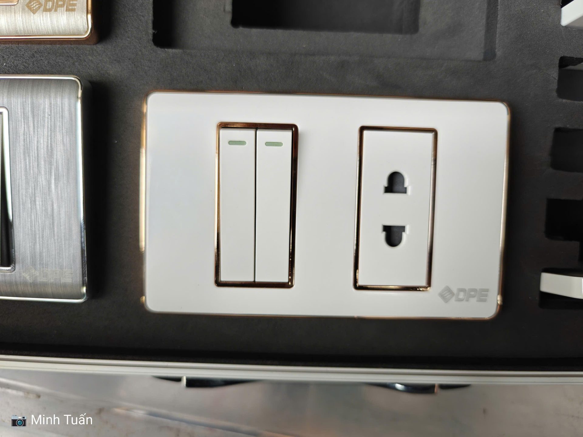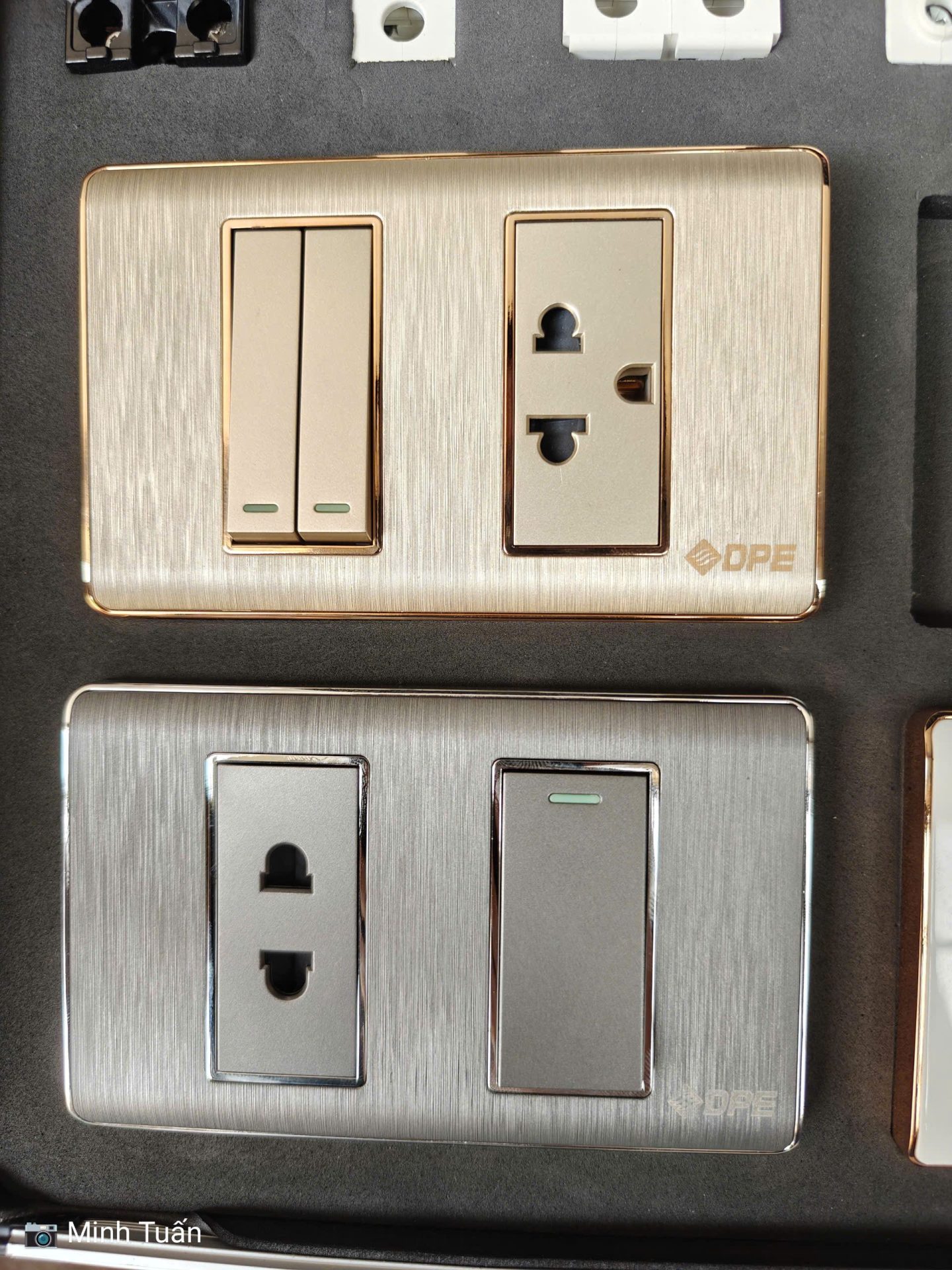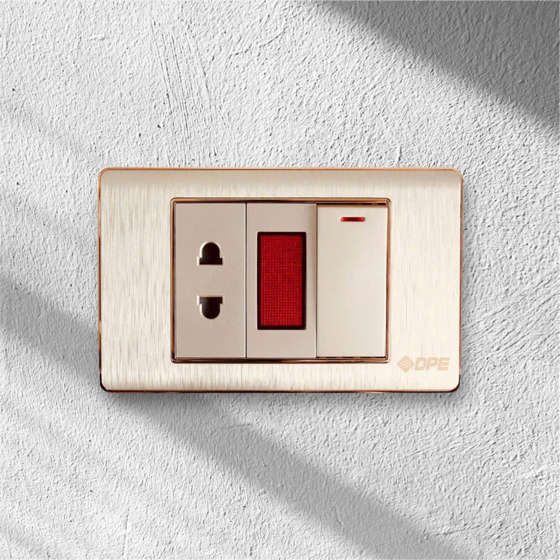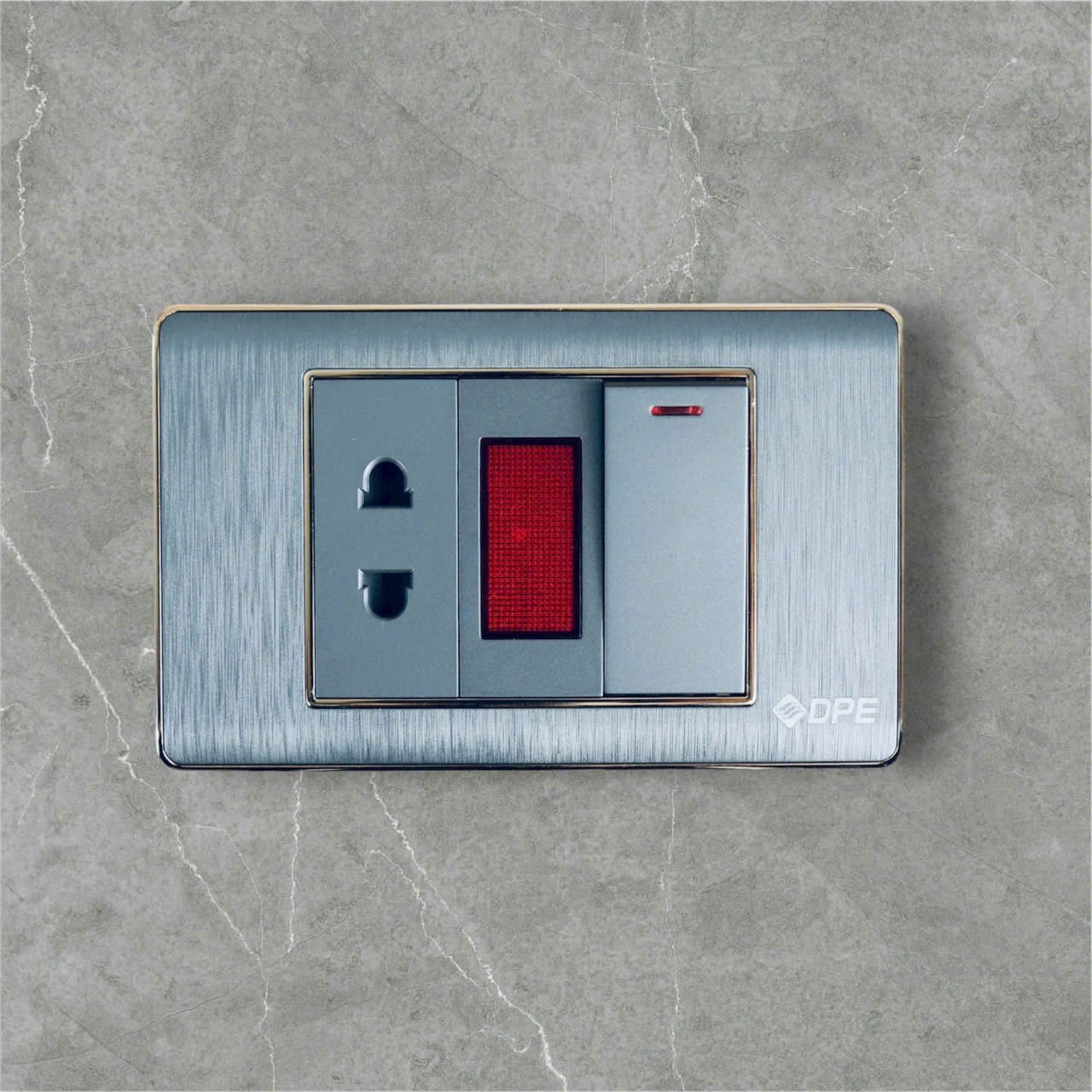 Công tắc ổ cắm cao cấp khung thép. mặt xước, viền crom DPE