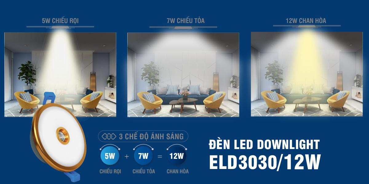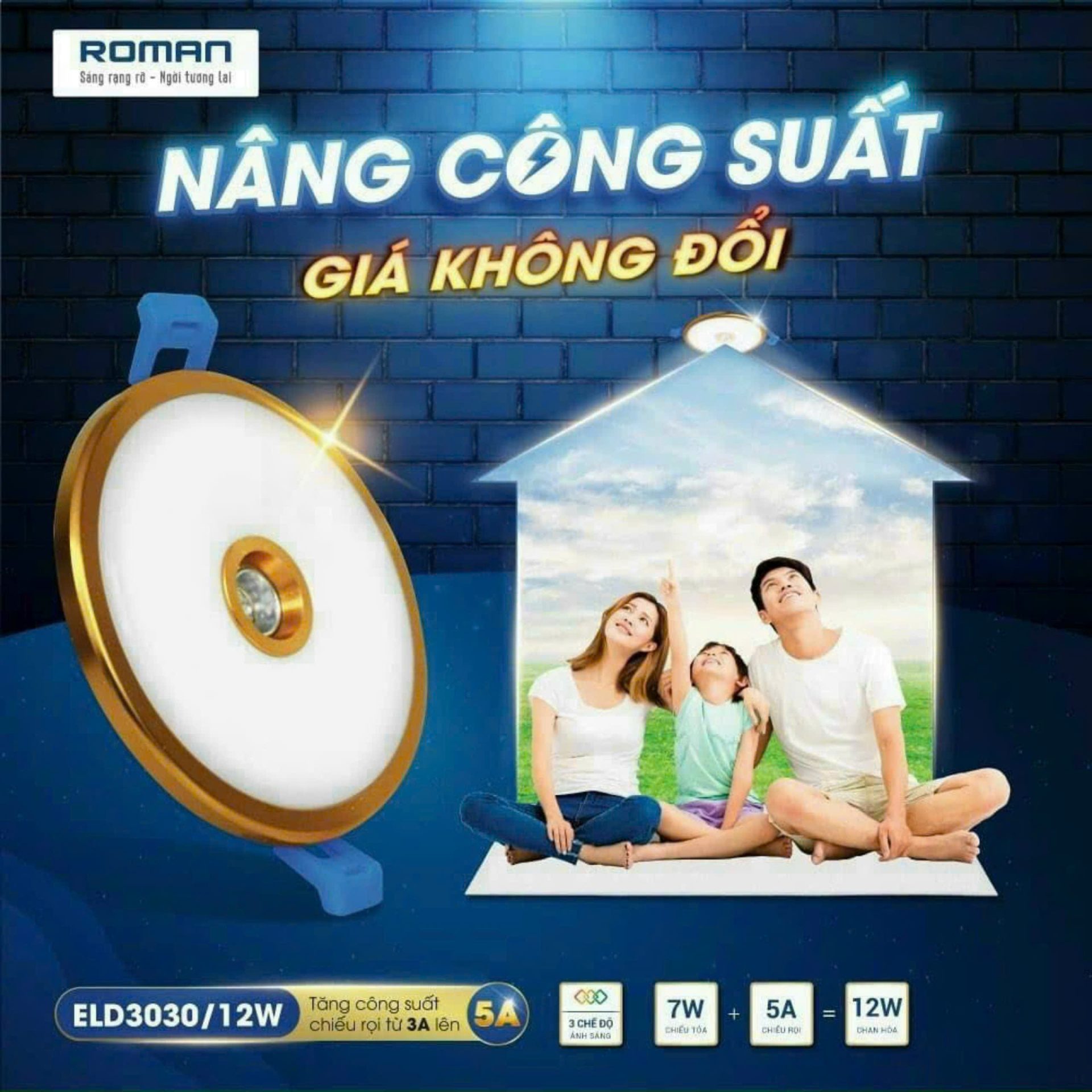 Đặt mua Đèn âm trần 3 chế độ sáng ELD3030/12W ROMAN