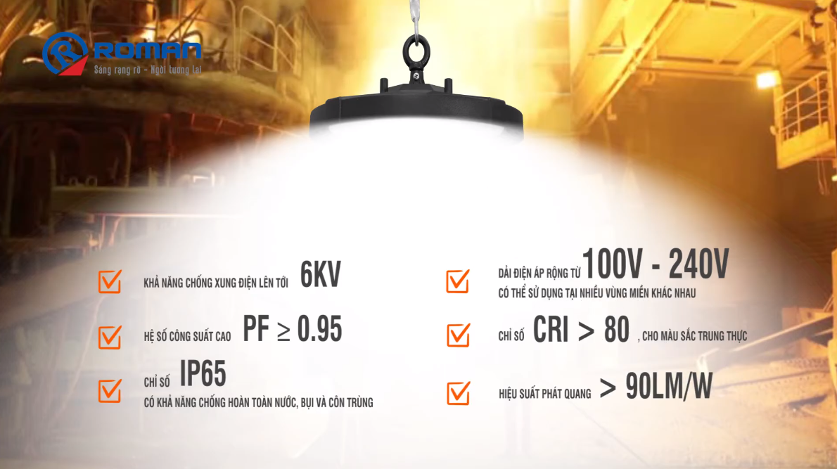 - Ứng dụng: Môi trường chiếu sáng công nghiệp, nhà xưởng, nhà kho…