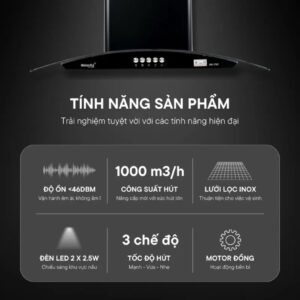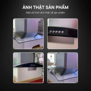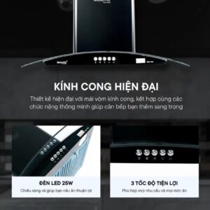 - Máy hút mùi kính cong thân làm bằng inox
