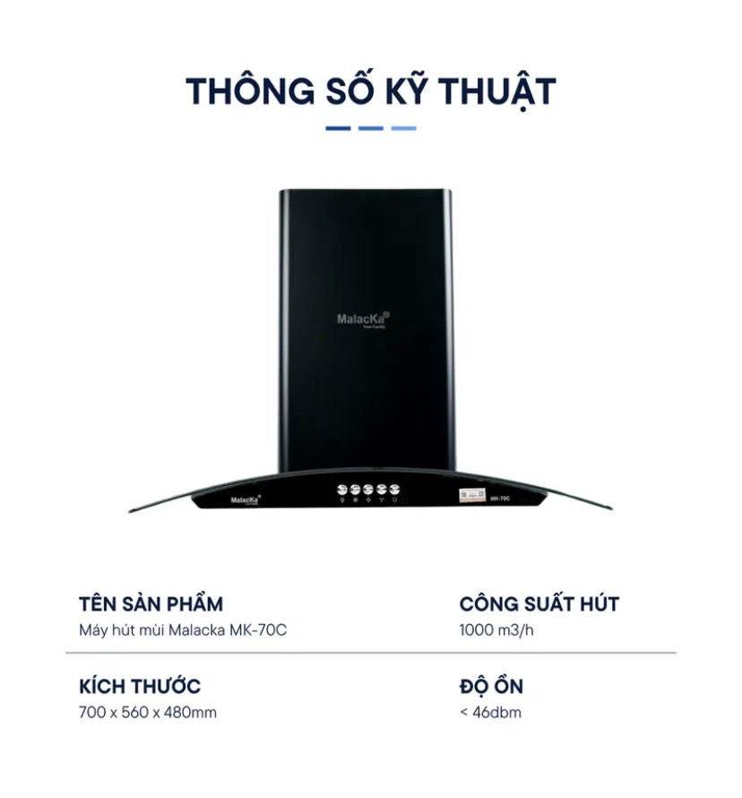Đặt mua Hút mùi MK70C Malacka