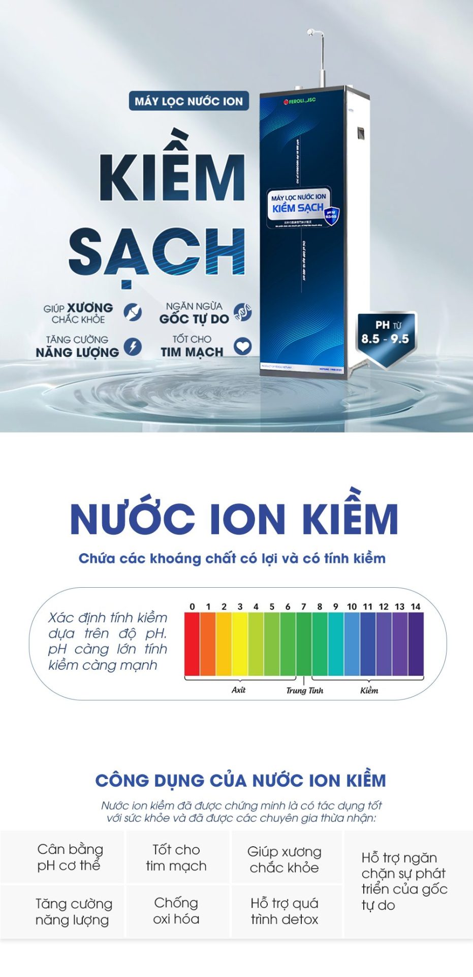 Máy lọc nước RO và Ion Kiềm Sạch Feroli