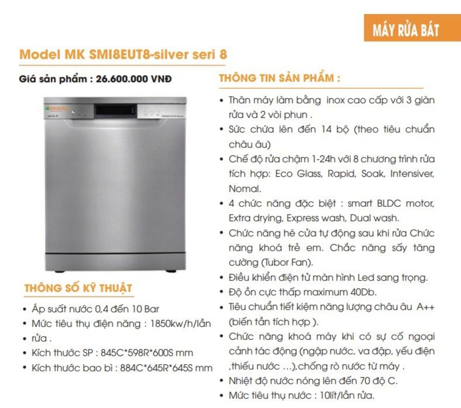Máy rửa bát Seri 8 Malacka 26.600.000