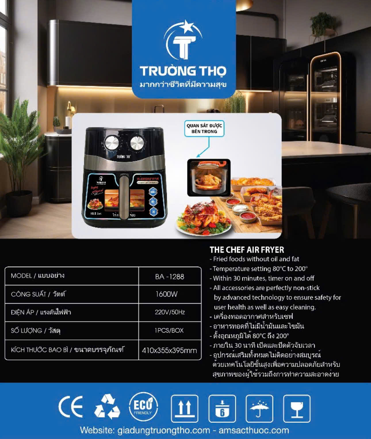 Đặt mua Nồi chiên không dầu Trường Thọ BA1288