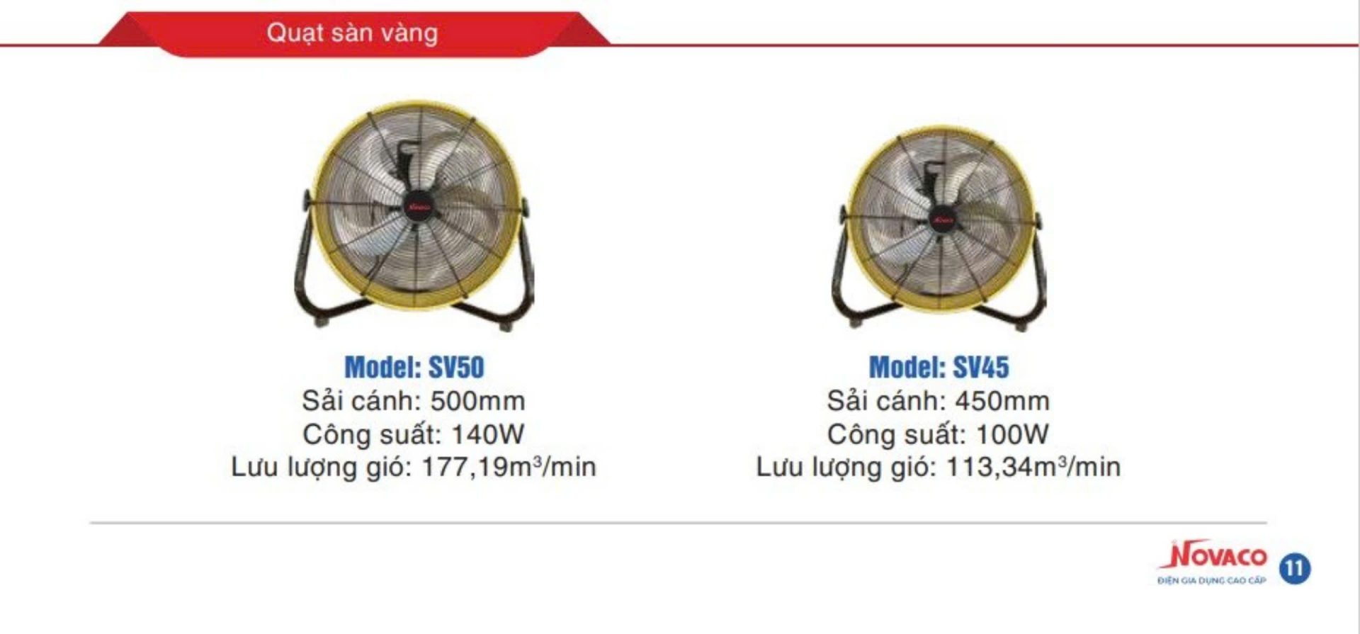 Đặt mua Quạt sàn 5 cánh nhôm kiểu Mỹ SV50 Novaco