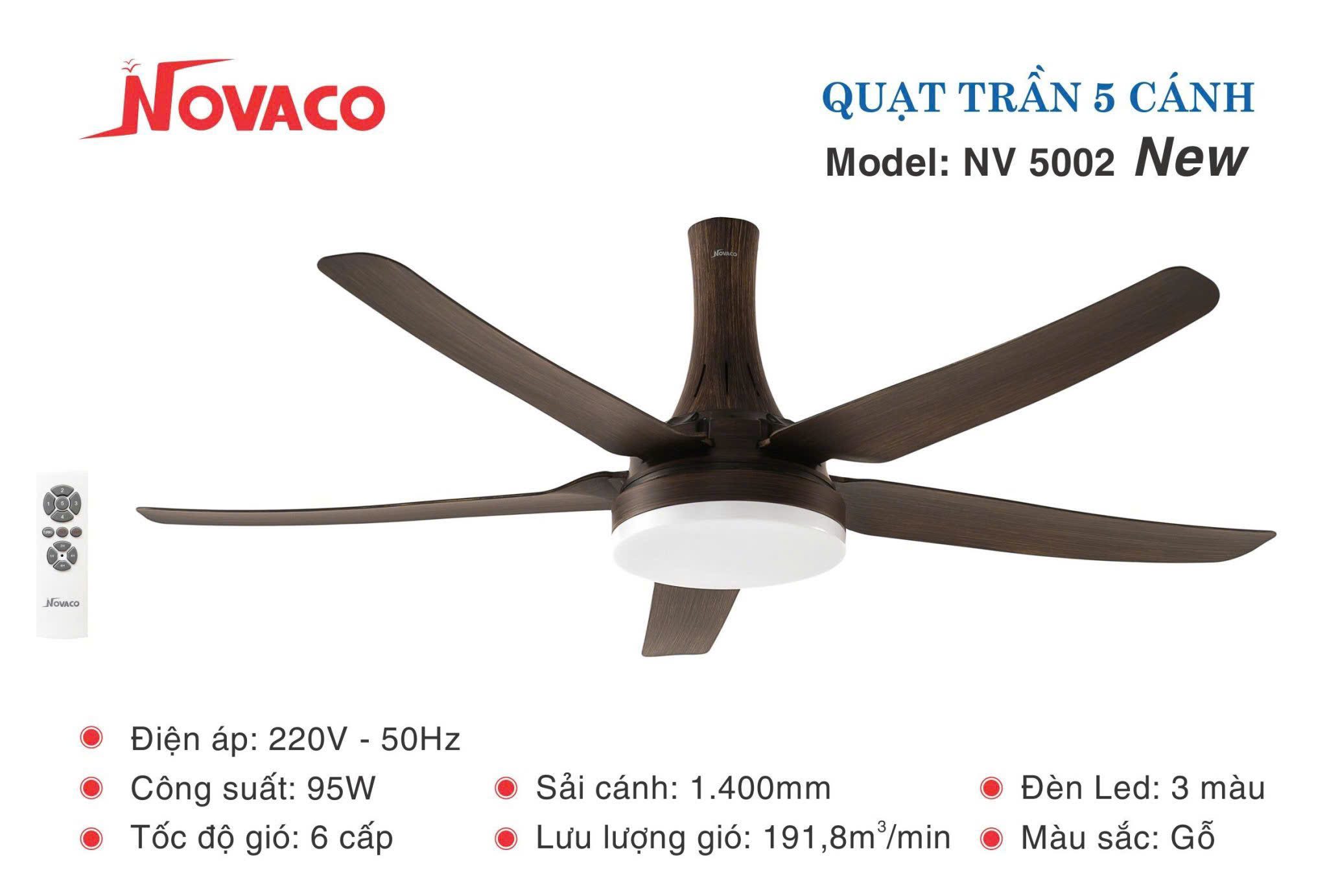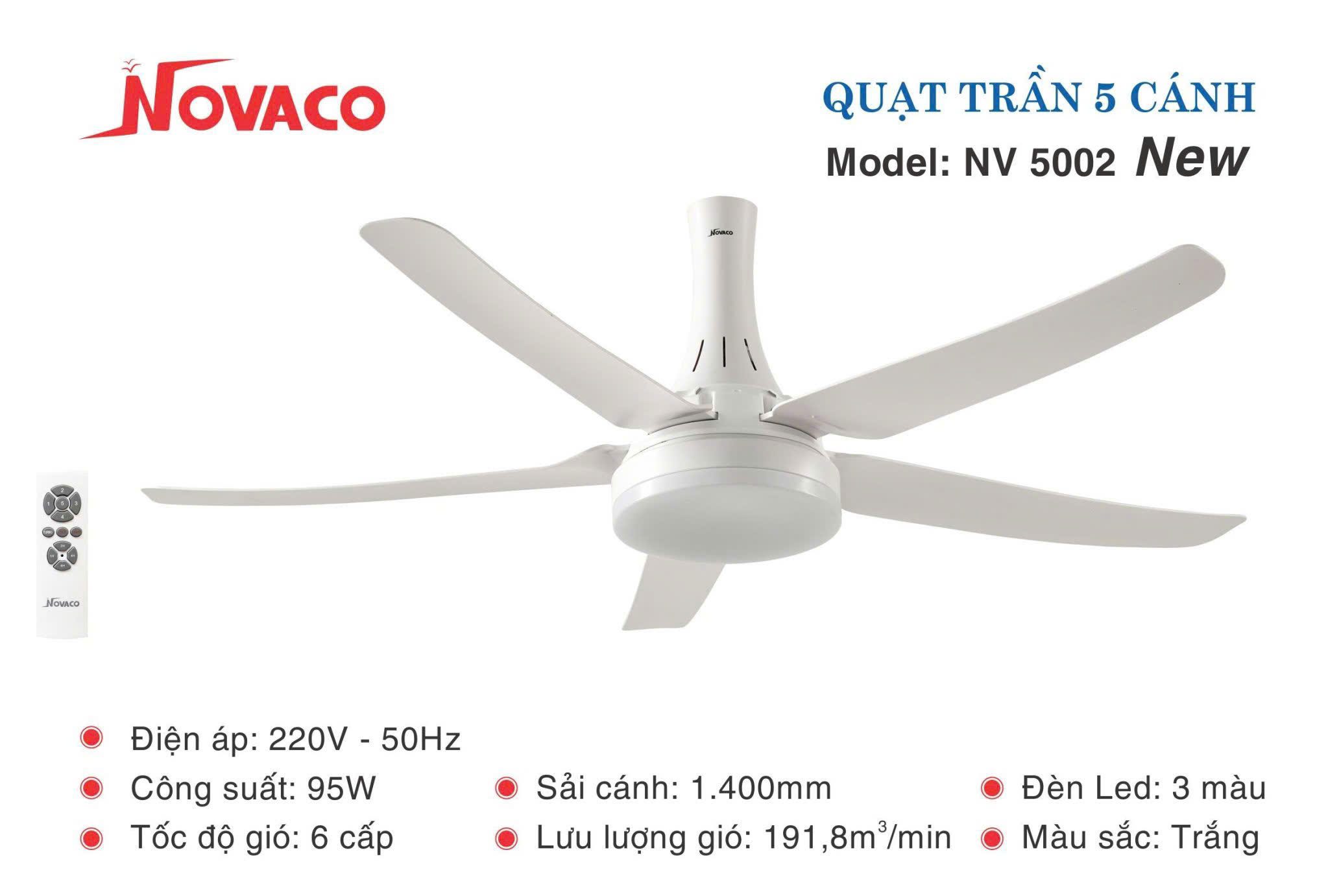 Quạt trần đèn 5 cánh NV5002 New Novaco (Các màu)