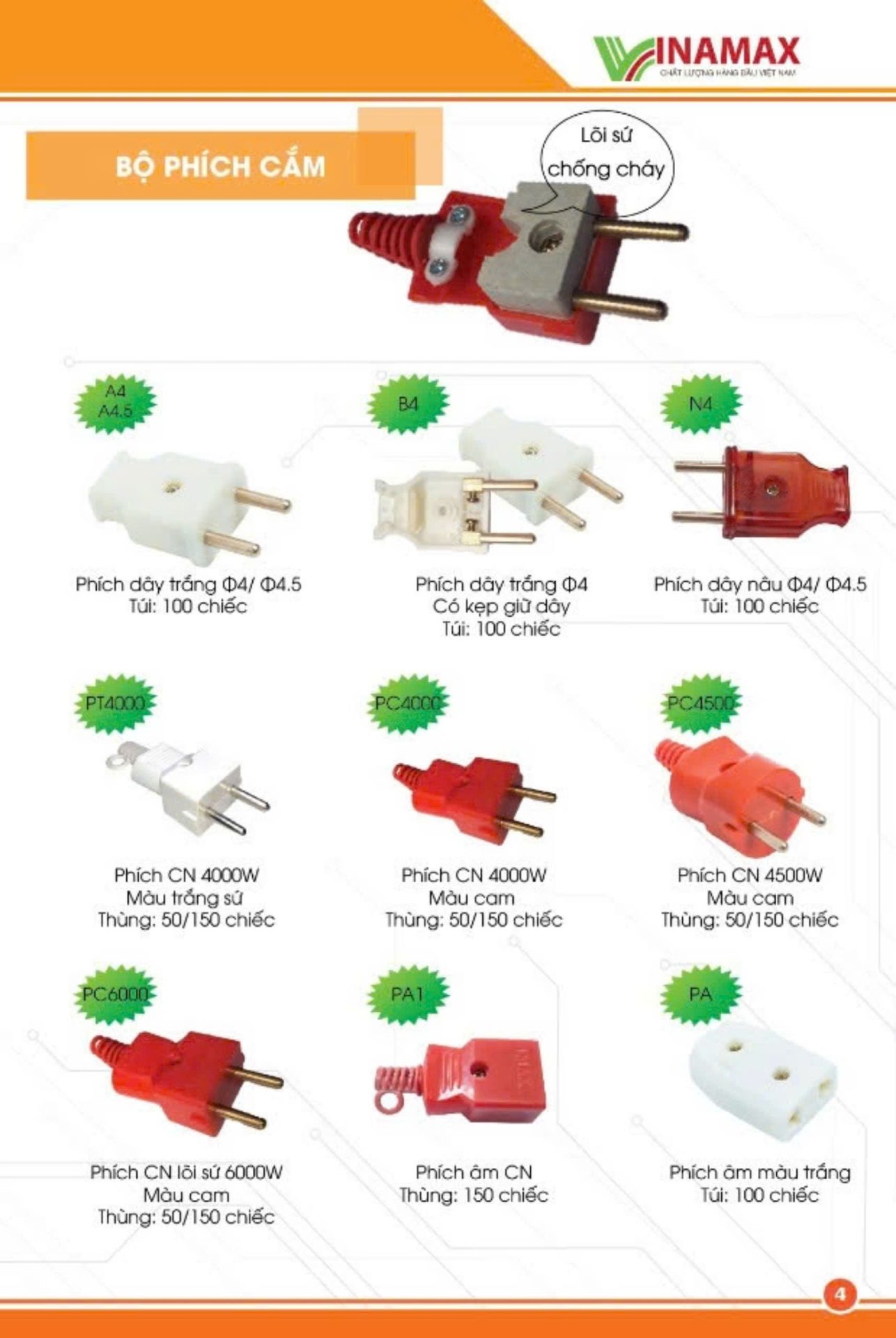 - Phích cắm chân đồng phi 4, phi 4.5, phích chịu tải 4000w, 6000w