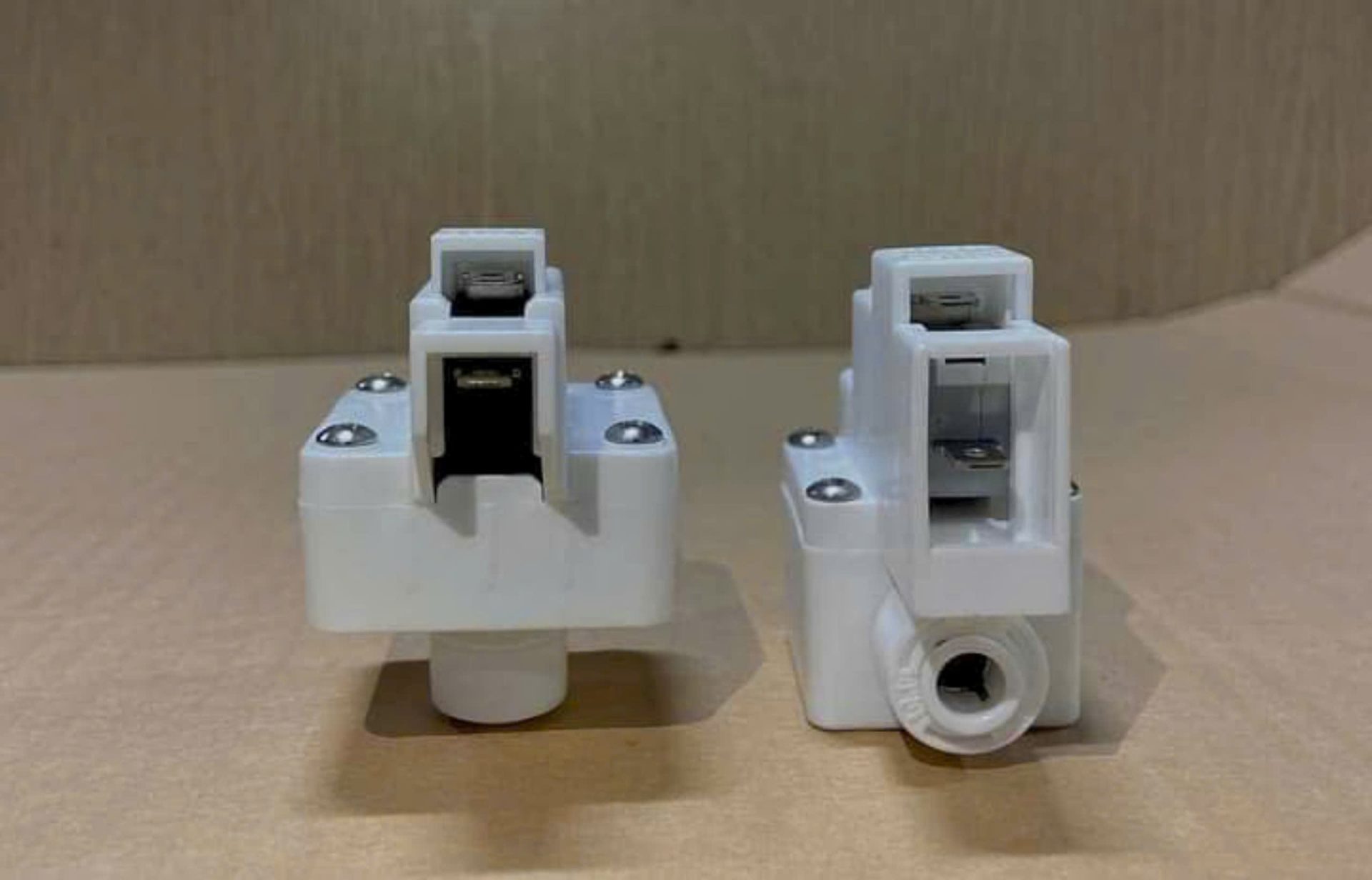 - Cấu tạo của van áp cao máy lọc nước: Van được thiết kế nhỏ gọn và được làm băng chất liệu nhựa, giúp cách điện tốt nhất. Van có 2 chiều 1 chiều nước vào và 1 chiều nước ra, van áp cao sử dụng nguồn điện 24V.